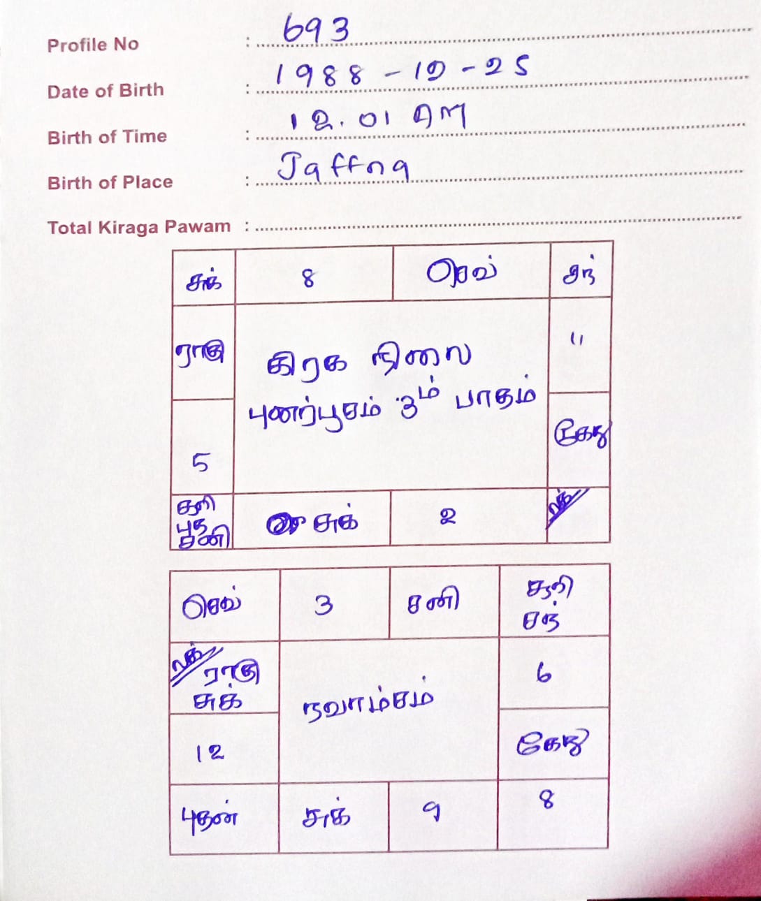Father Cast : Pure Jaffna Vellalar